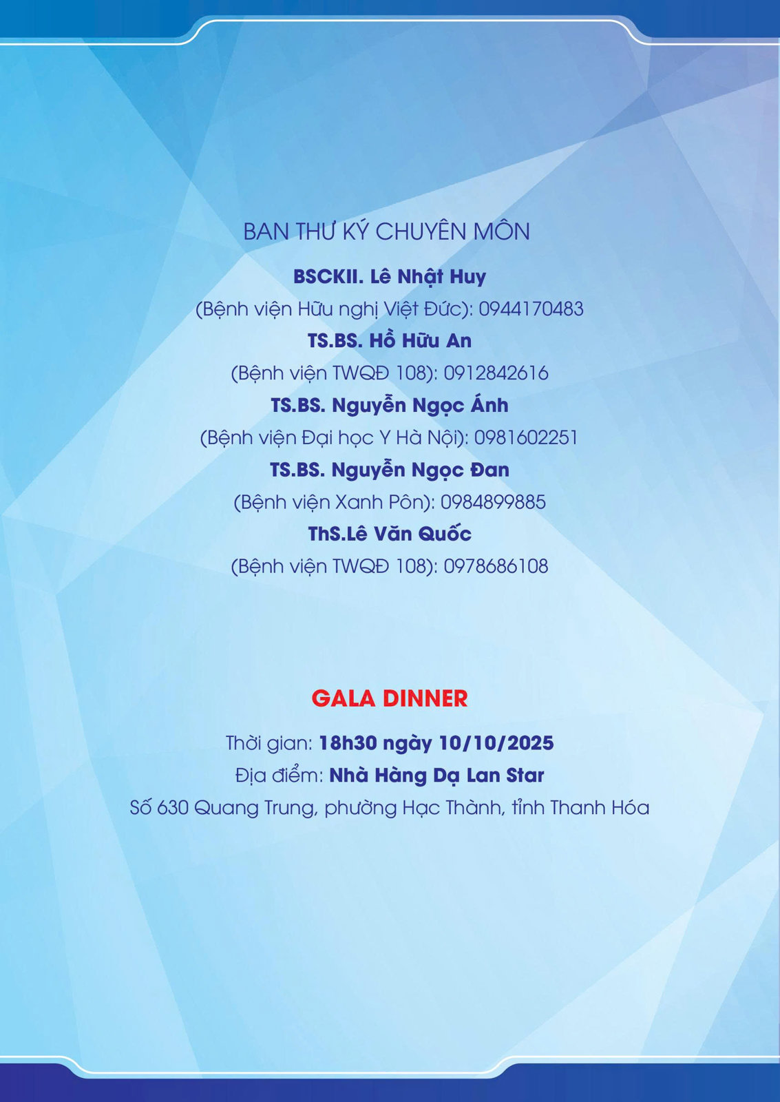 Kính chúc Quý đại biểu sức khỏe, hạnh phúc và thành công. Hẹn gặp lại Quý vị tại các sự kiện khoa học tiếp theo của Hội.