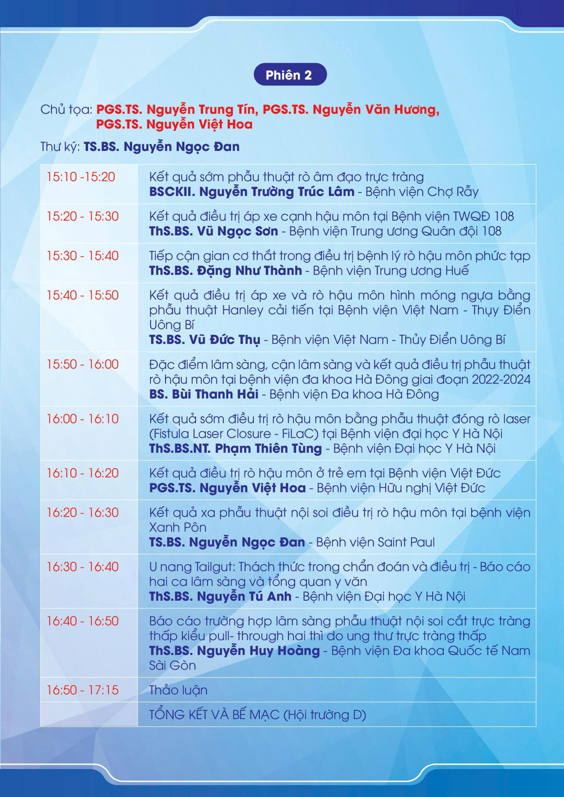 Hội Hậu môn – Trực tràng Việt Nam mong rằng những thành quả từ Hội nghị lần này sẽ là nền tảng để chúng ta tiếp tục hợp tác, học hỏi, và phát triển hơn nữa, vì sức khỏe người bệnh và sự tiến bộ của chuyên ngành.