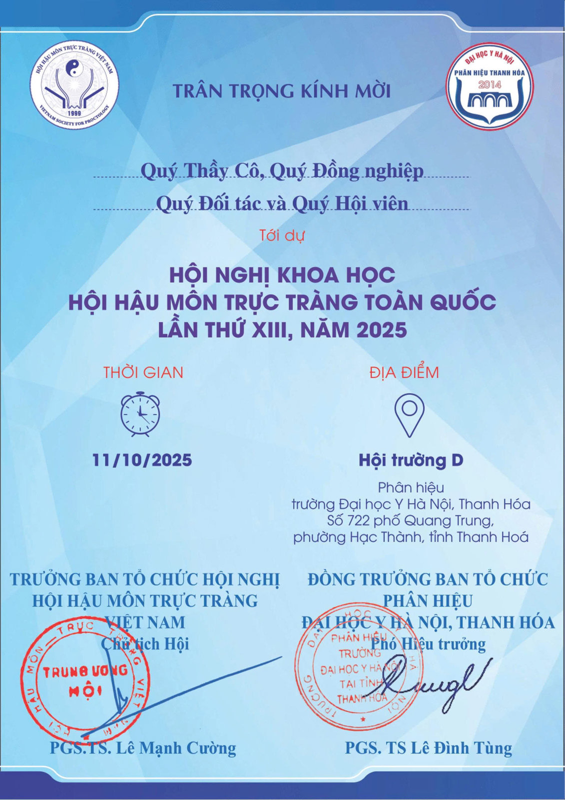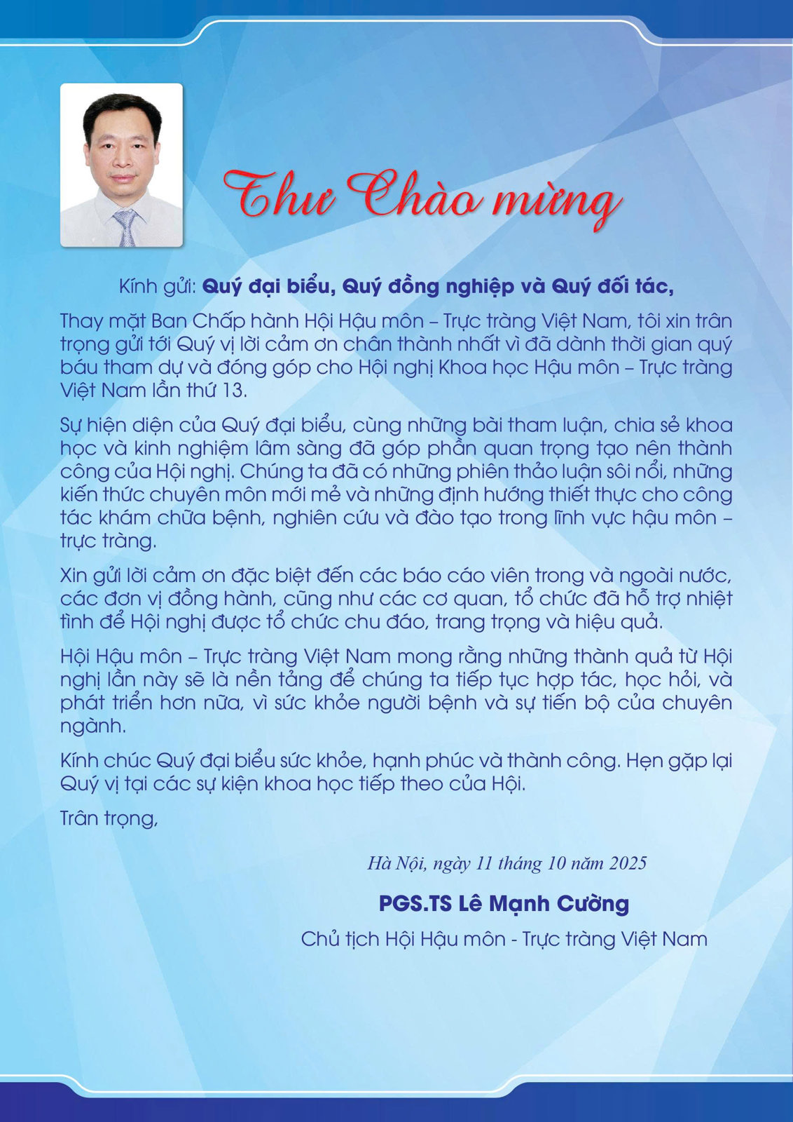 Thư mời tham gia Hội nghị khoa học hậu môn trực tràng toàn quốc lần thứ XIII, năm 2025